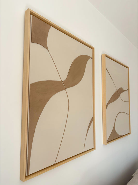LECCE tableau formes organiques relief marron camel et crème