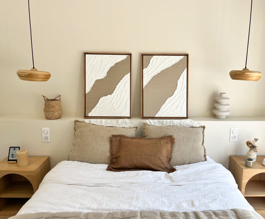 VARENNA DUO tableaux texturés lin et blanc