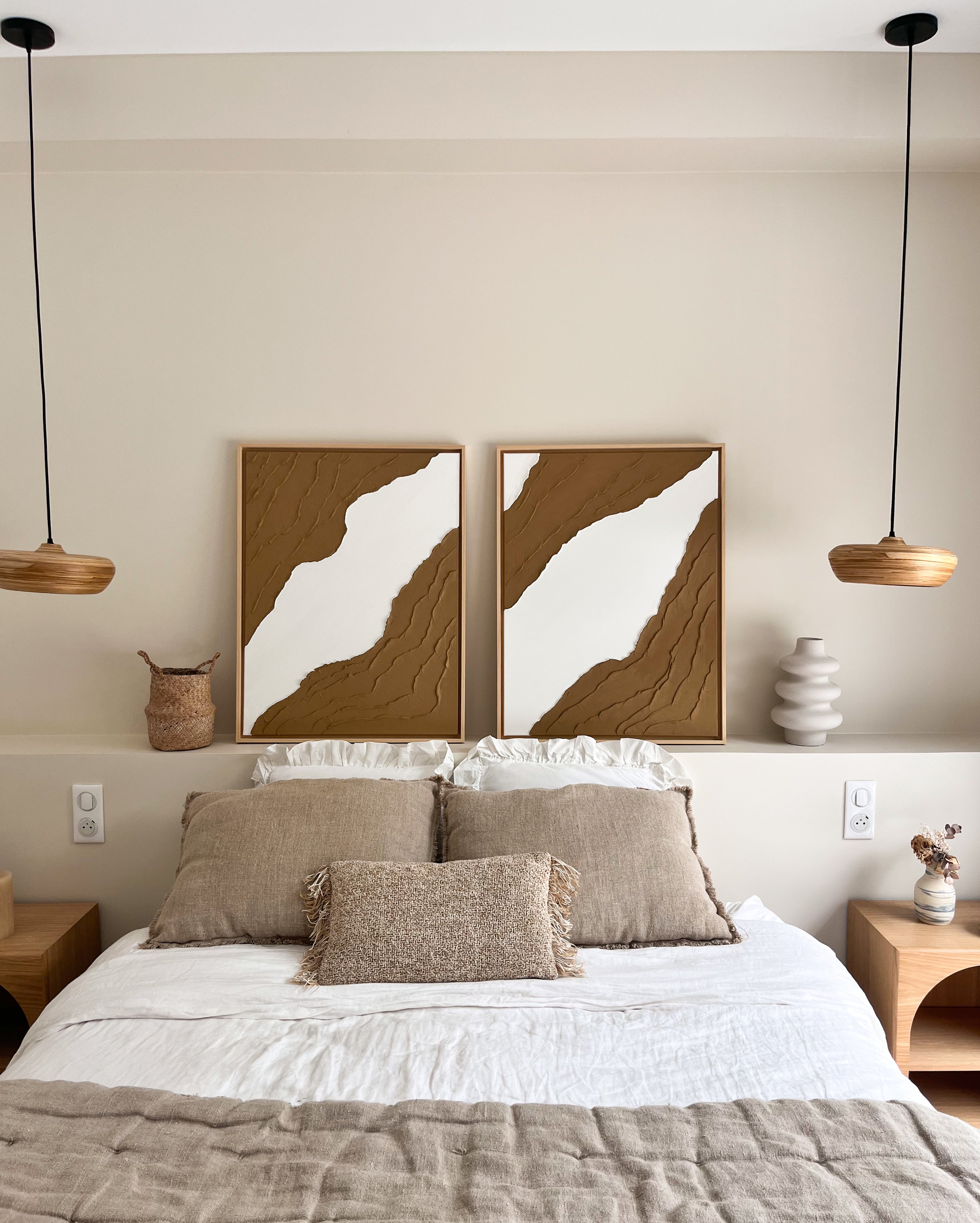 BARI DUO tableaux texturés marron camel et blanc