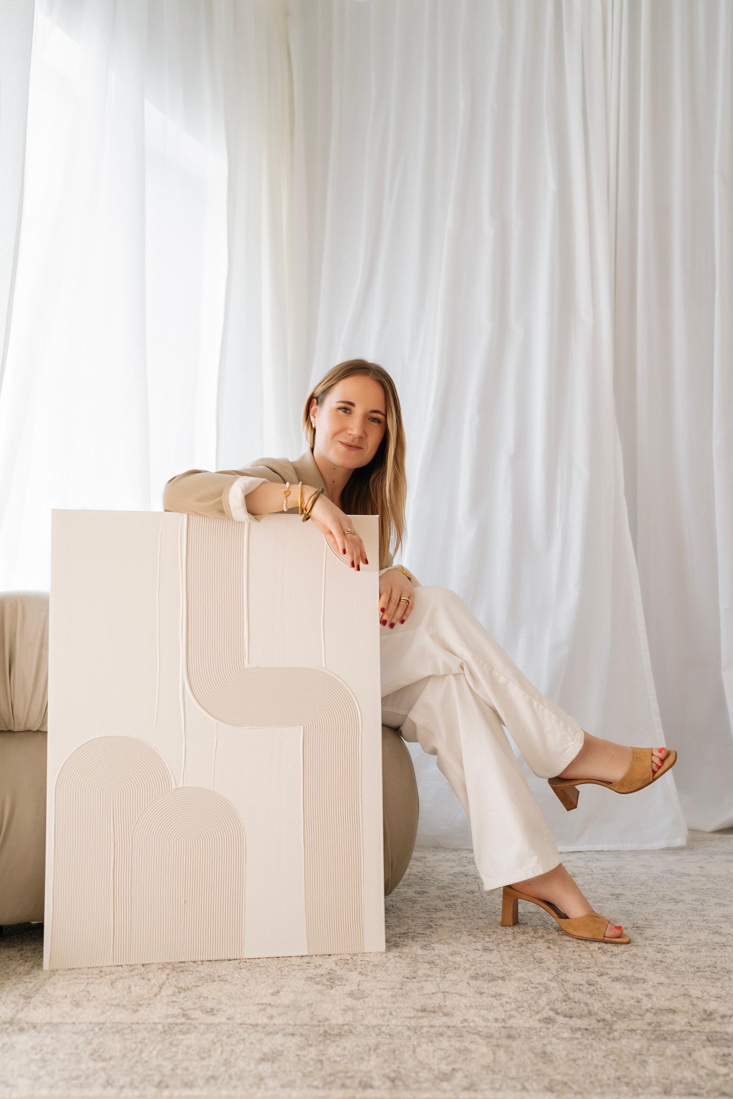 NESSO tableau formes organiques relief beige et crème