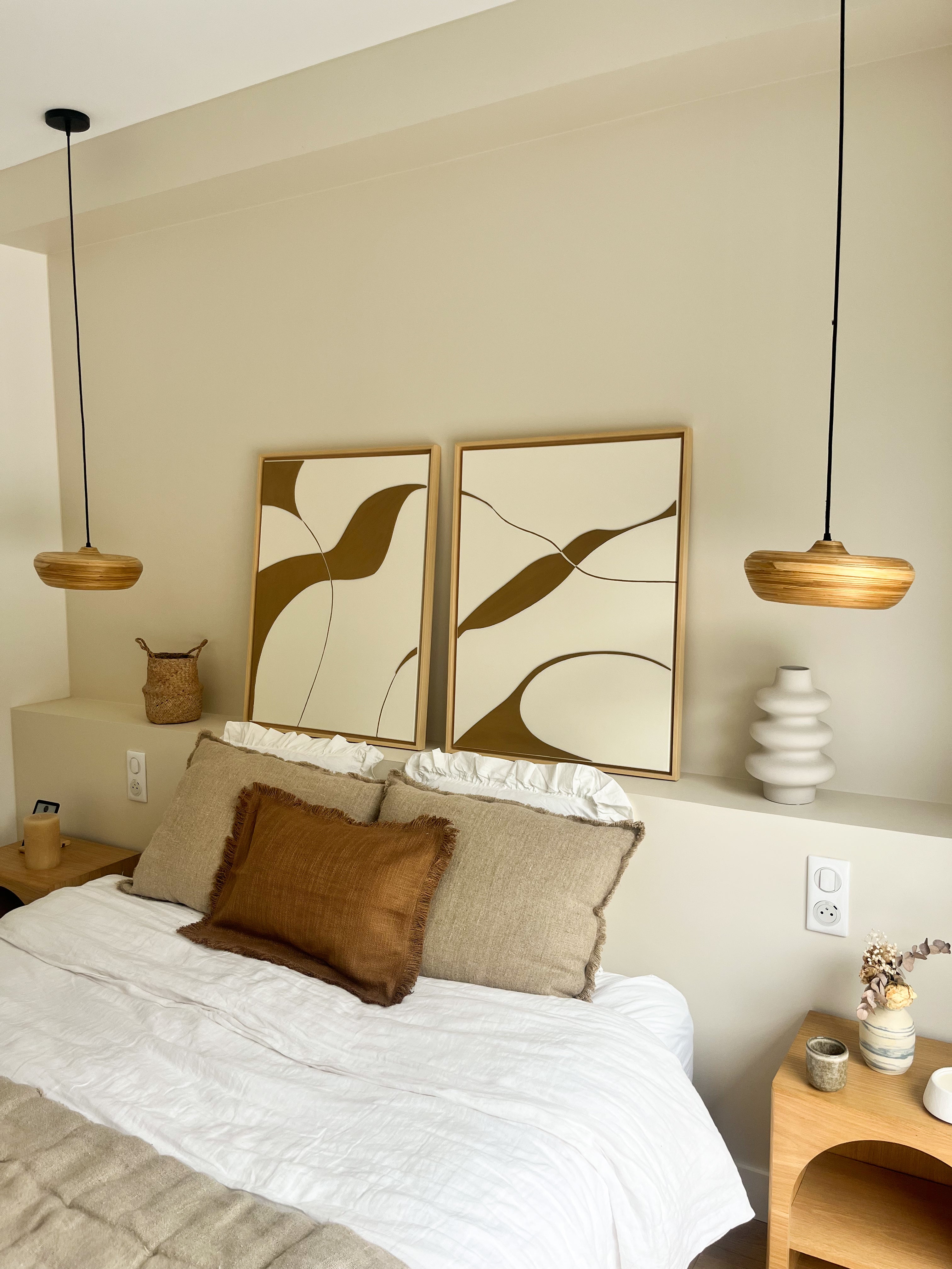 VARENNA DUO tableaux texturés lin et blanc