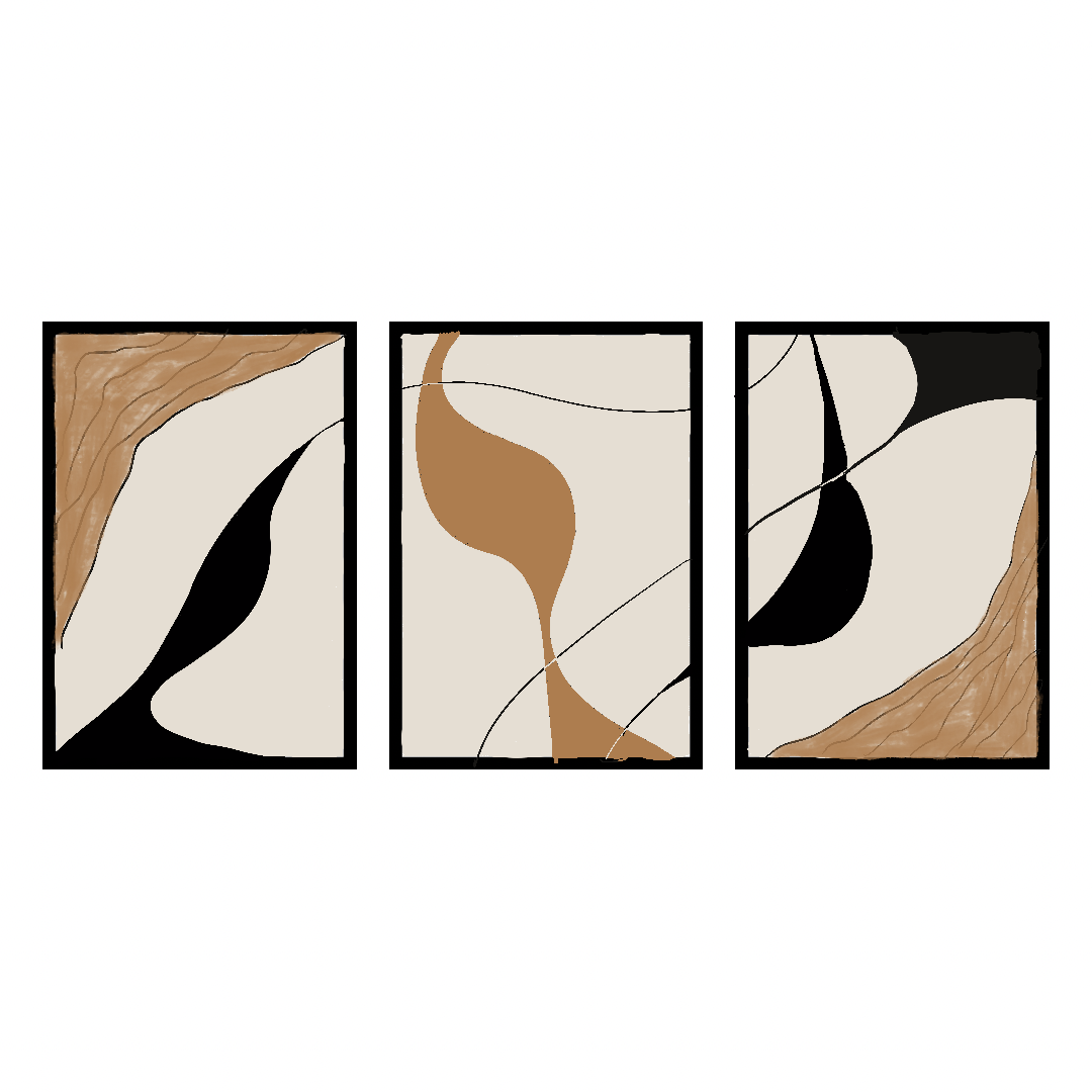 Je leur ai proposé un triptyque regroupant les deux modèles de tableaux tout en intégrant des tonalités de noir et de marron en accord avec leur mobilier !