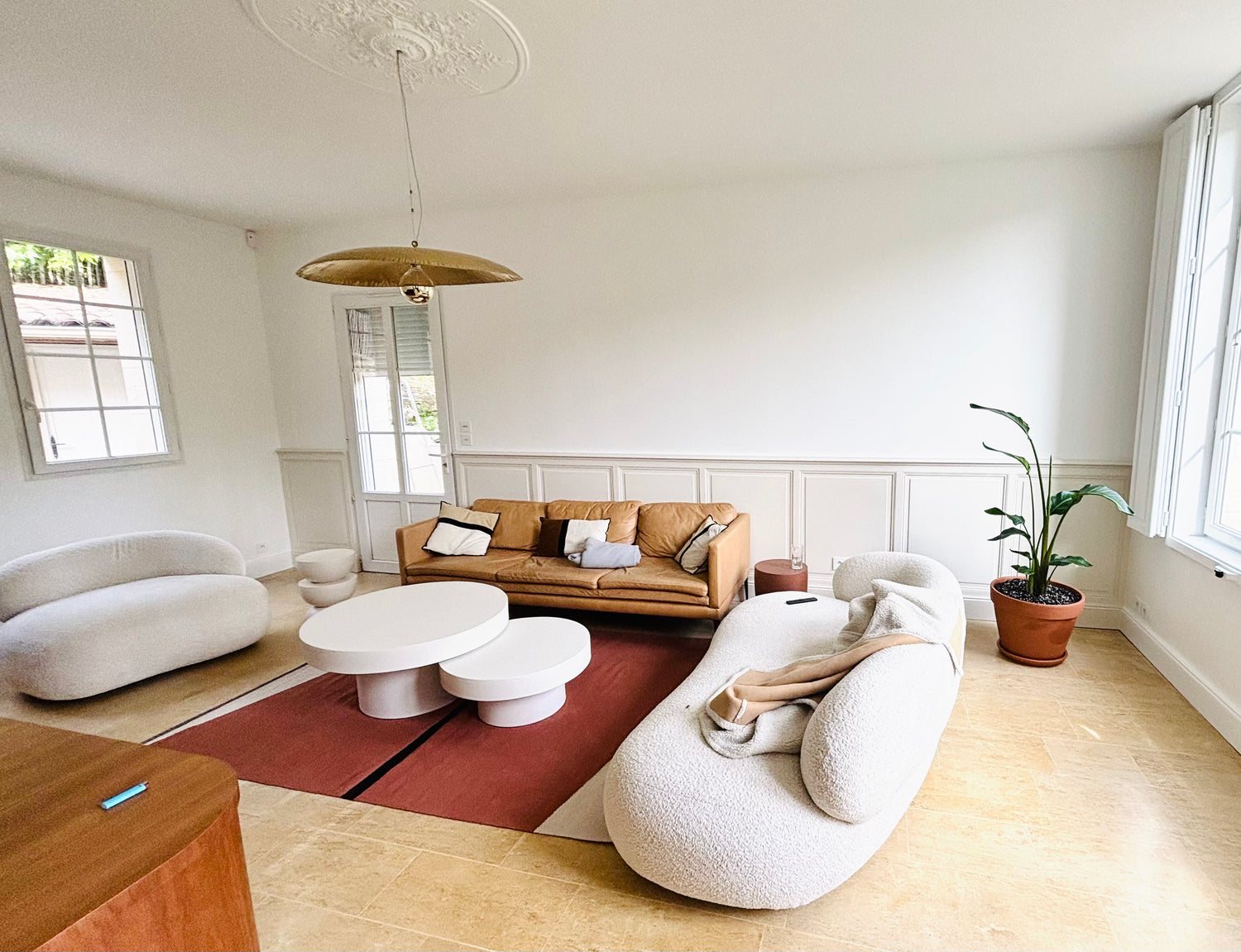 Les propriétaires de ce magnifique salon avaient eu un coup de cœur pour les tableaux SYDNEY TRIO et PORQUEROLLES, ils souhaitait également des tons plutôt foncés et chauds.