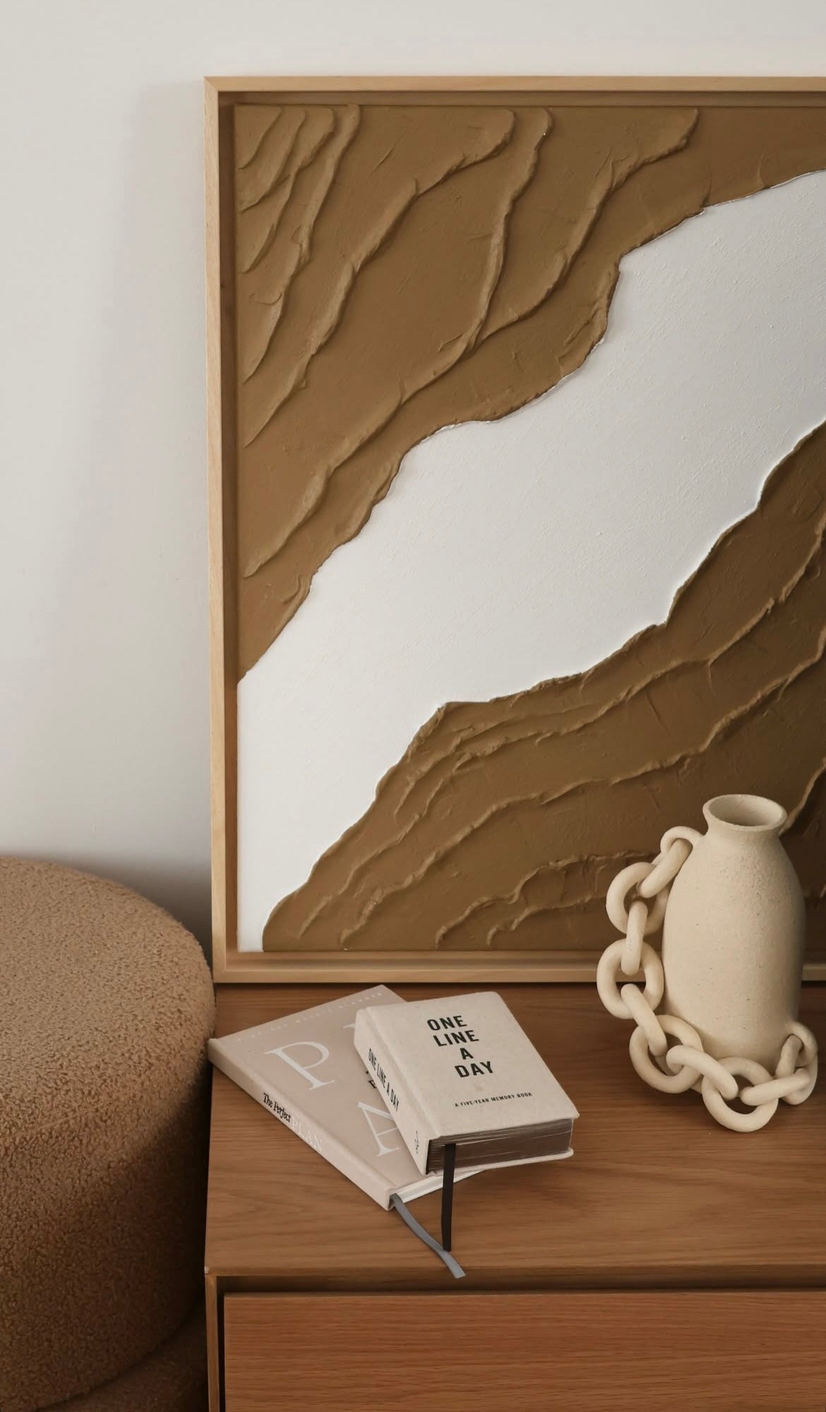 BARI marron camel et blanc - tableau texturé en relief