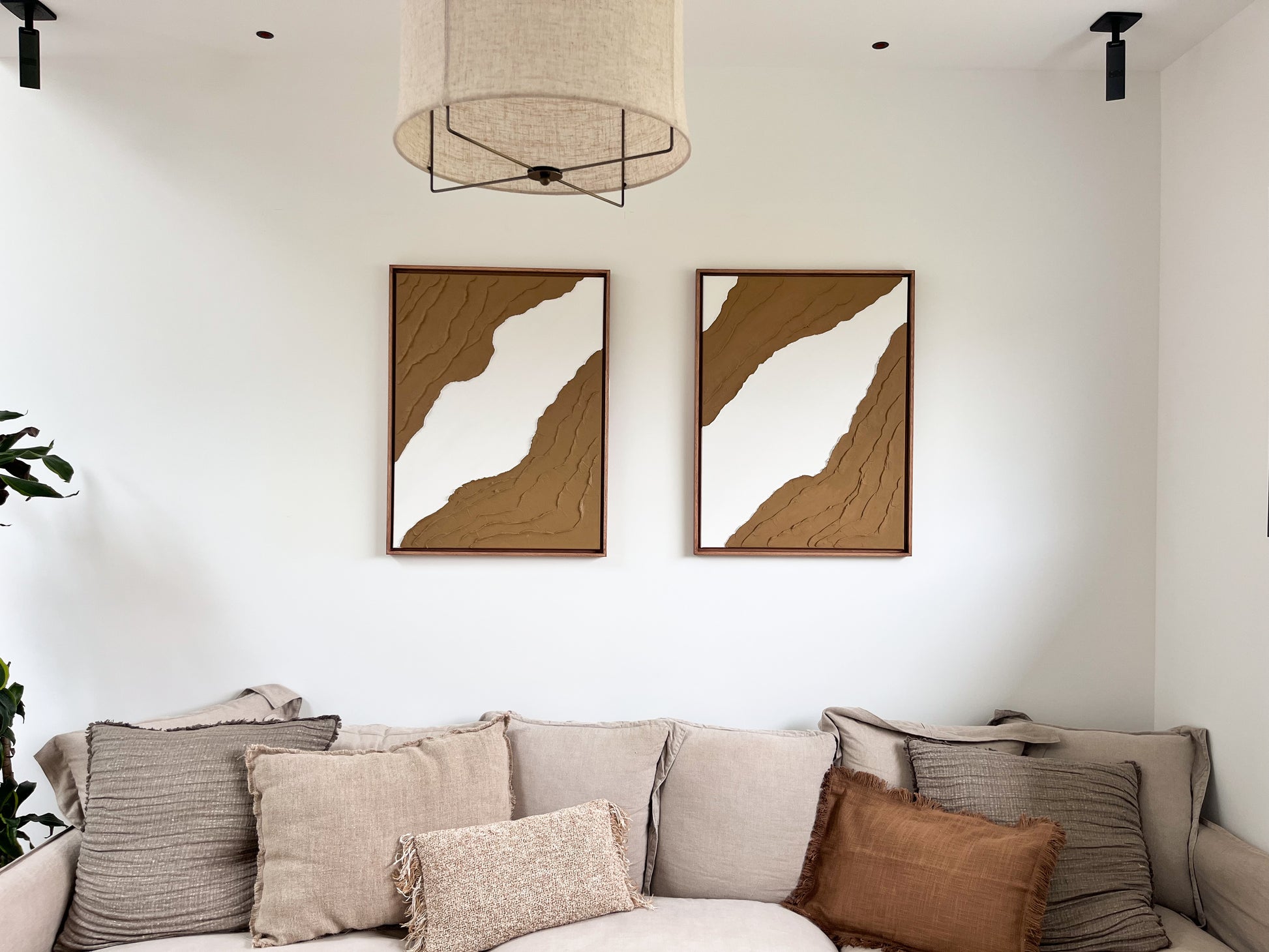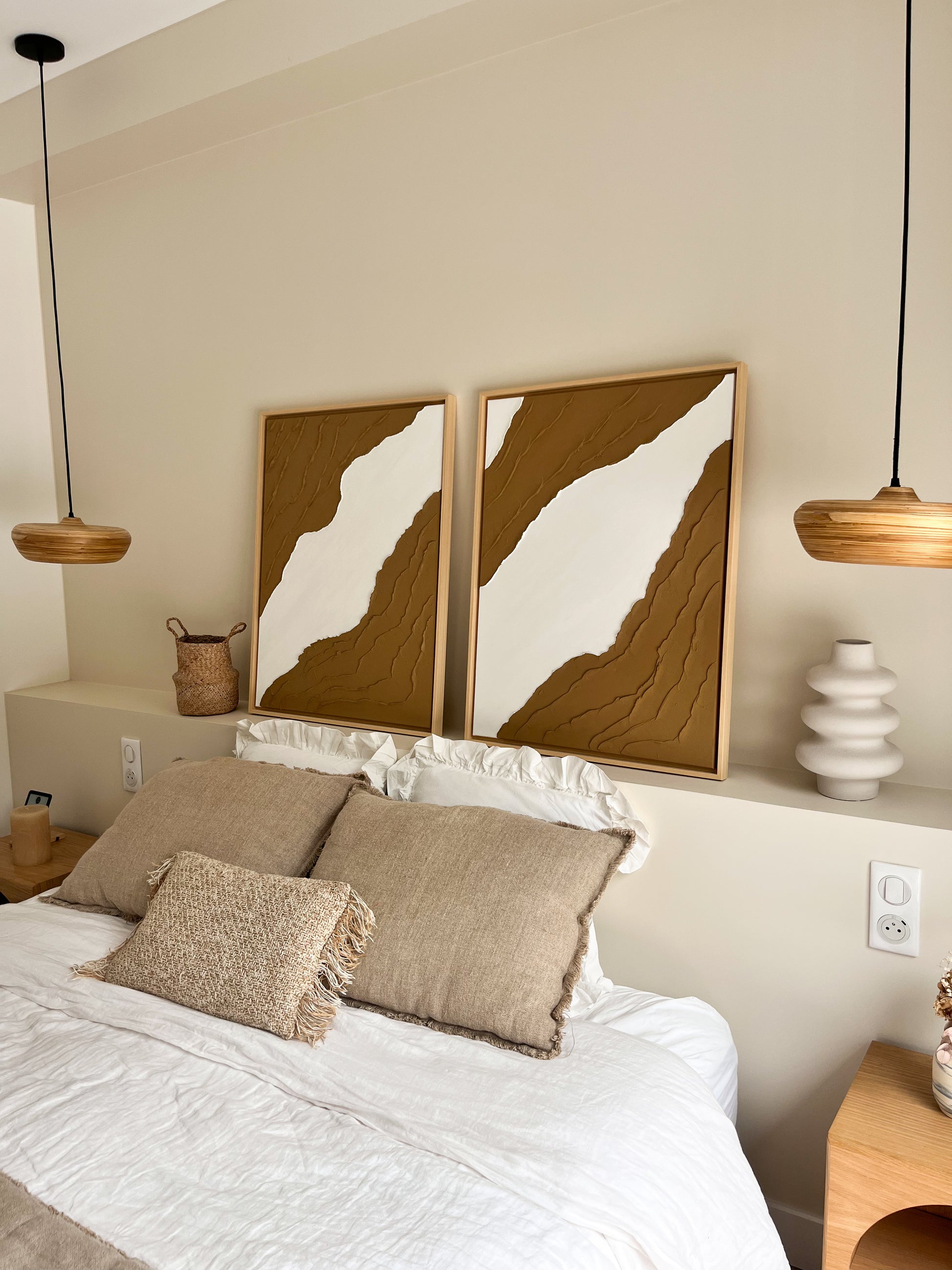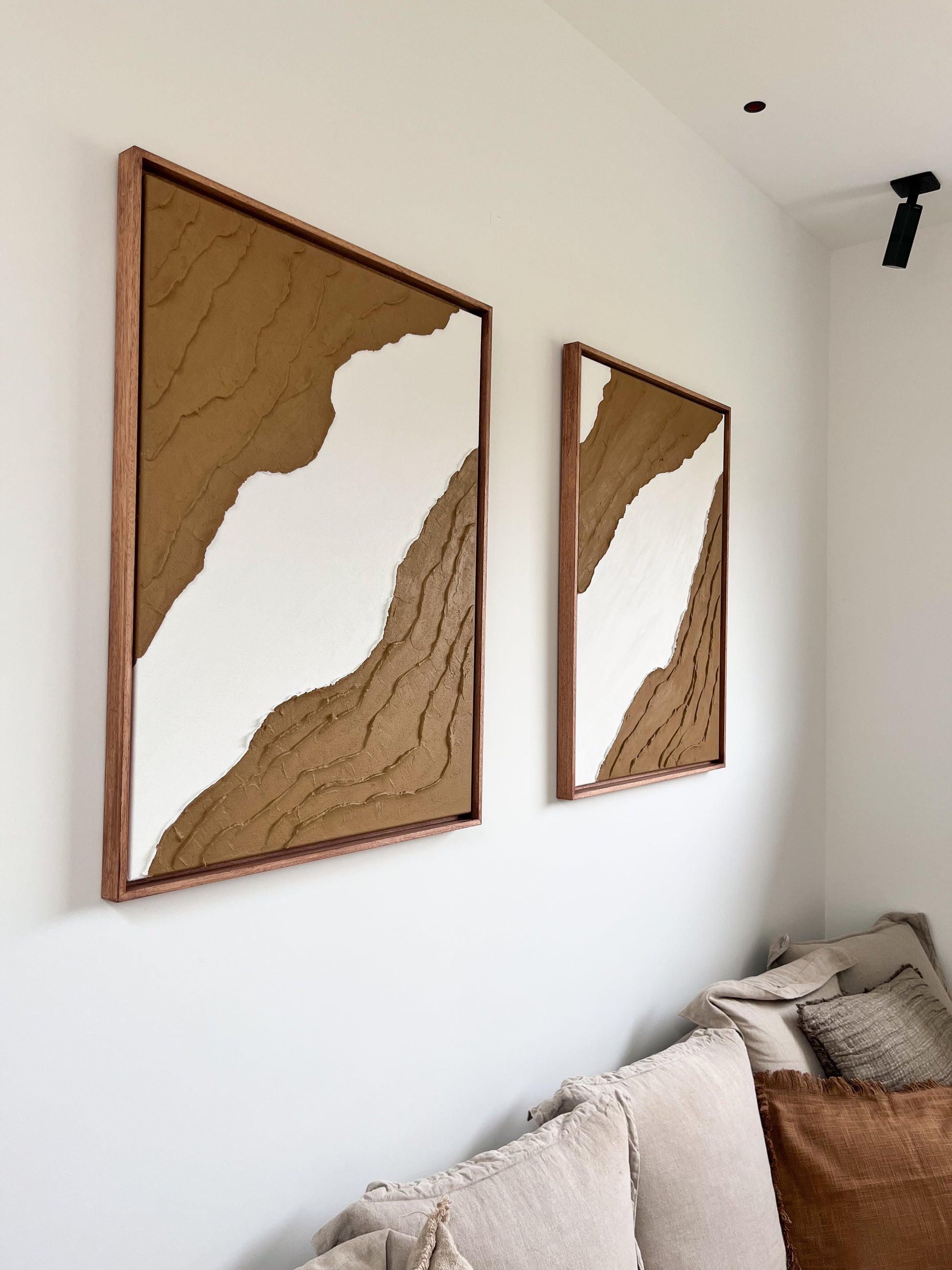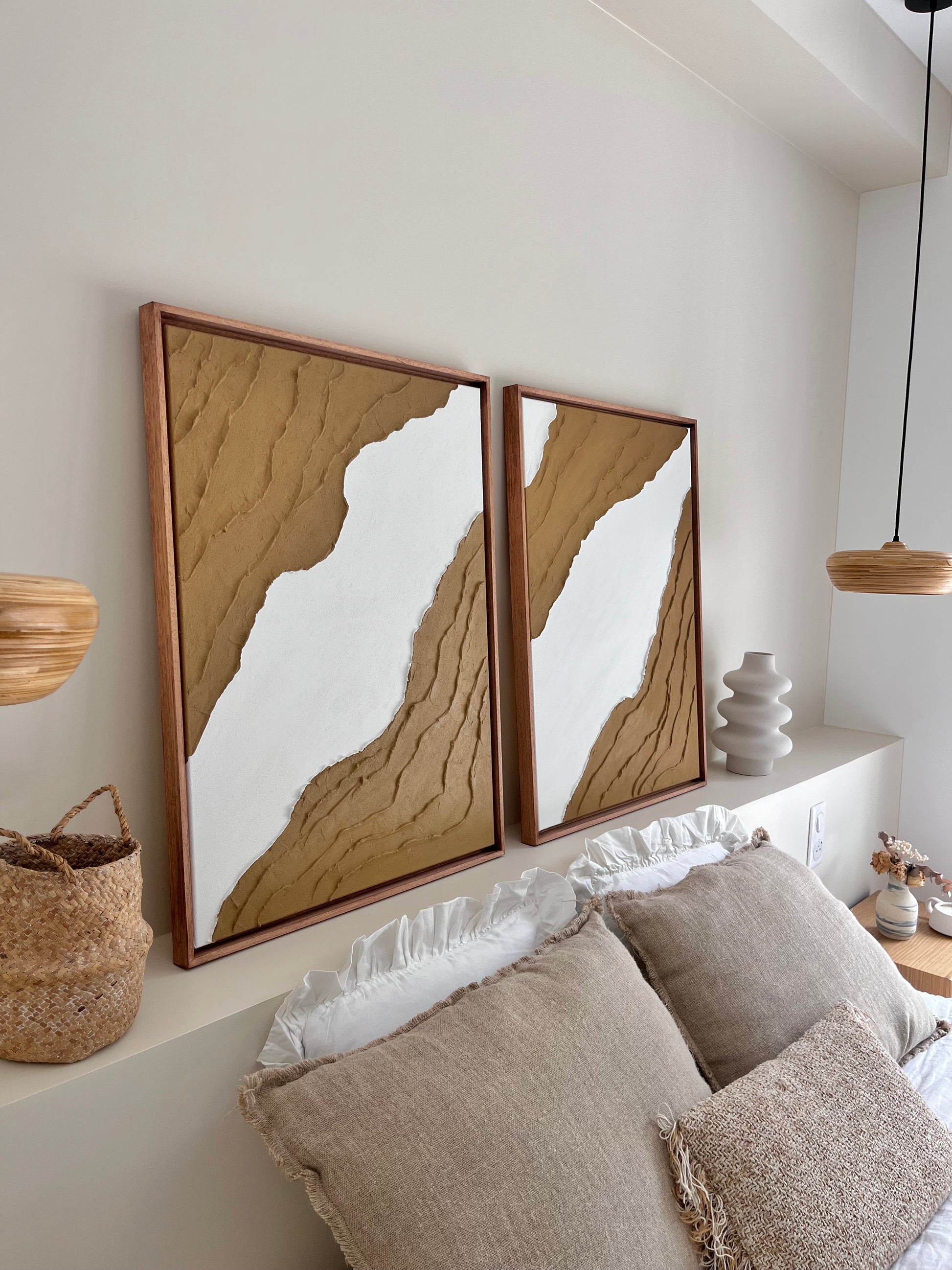 Offrez une touche intense de texture à votre décoration intérieure avec ce magnifique DUO de tableaux texturés blanc et marron grainé. Ces deux tableaux se rejoignent par le relief coloré qui les unit. Ce DUO est idéal pour créer un intérieur sobre et épuré, tout en ajoutant une touche distinctive à votre ambiance.