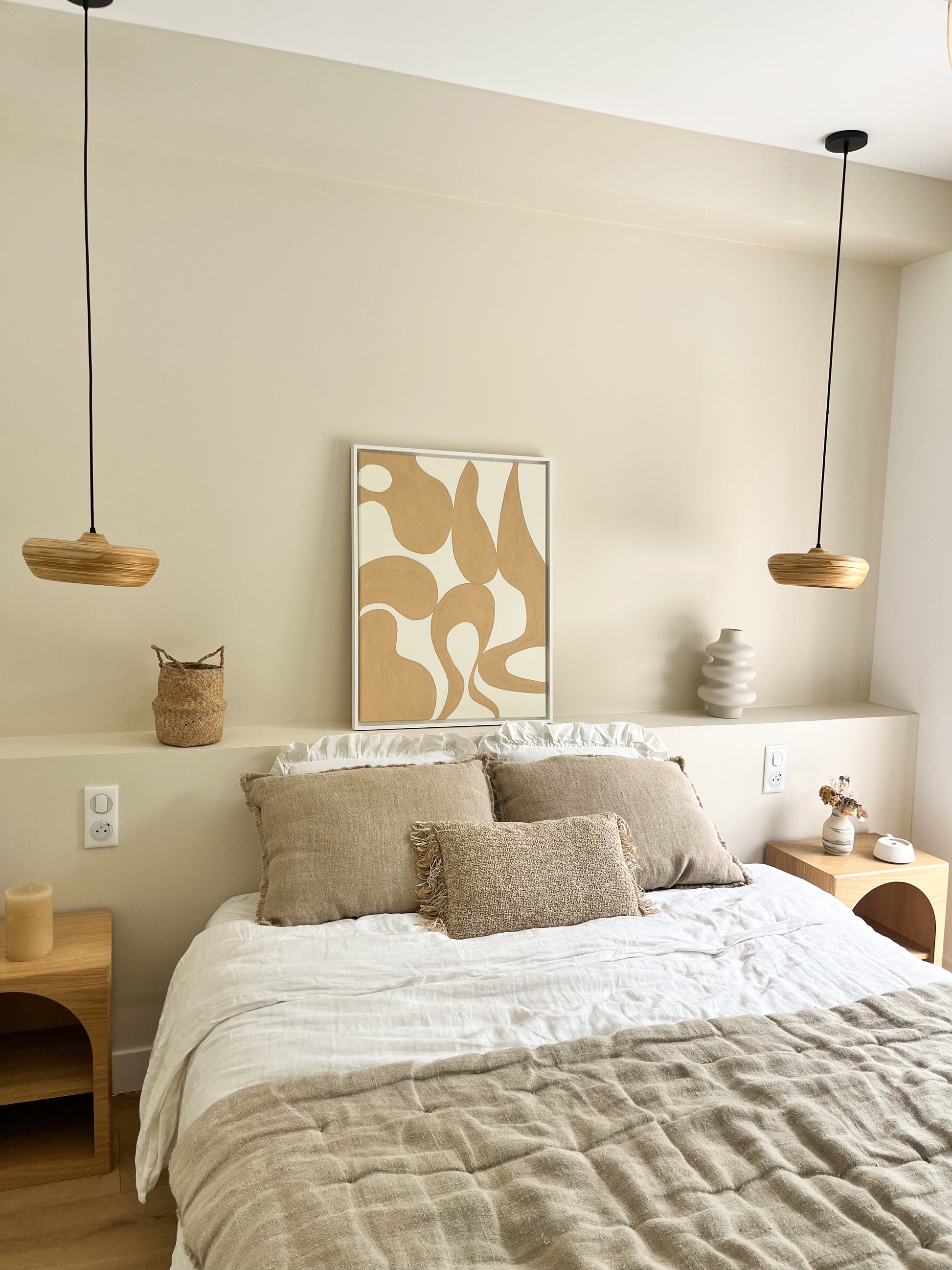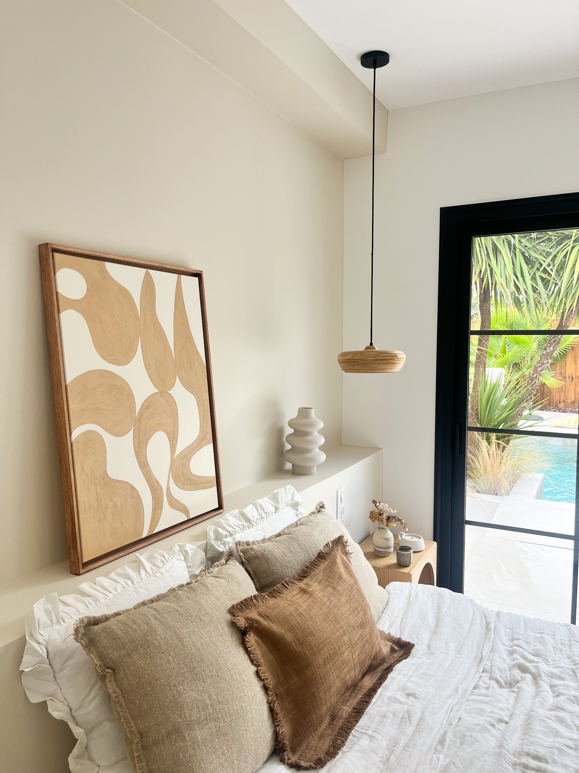 Aux couleurs crème et marron clair ce tableau épuré et lumineux est parfait pour un intérieur chaleureux et tendance, il s'adaptera parfaitement à votre décoration en apportant une touche de couleur et de texture.