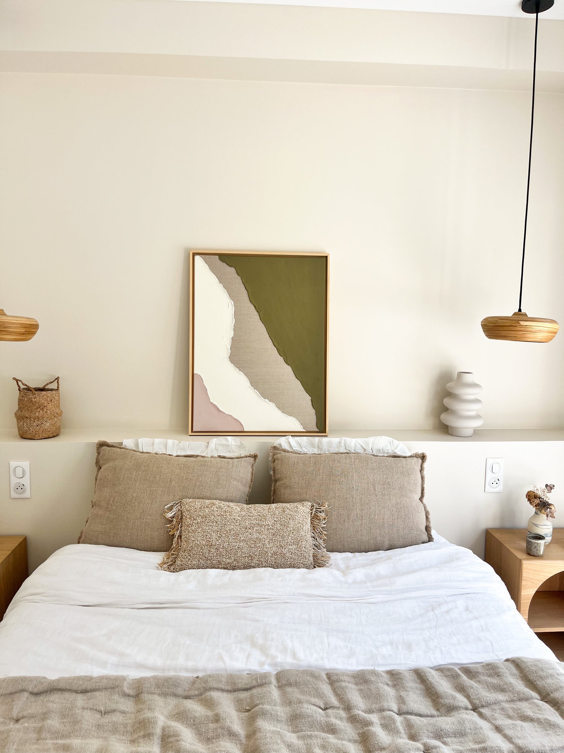BELLANO COLLECTION CAPSULE tableau texturé lin, crème et rose pâle