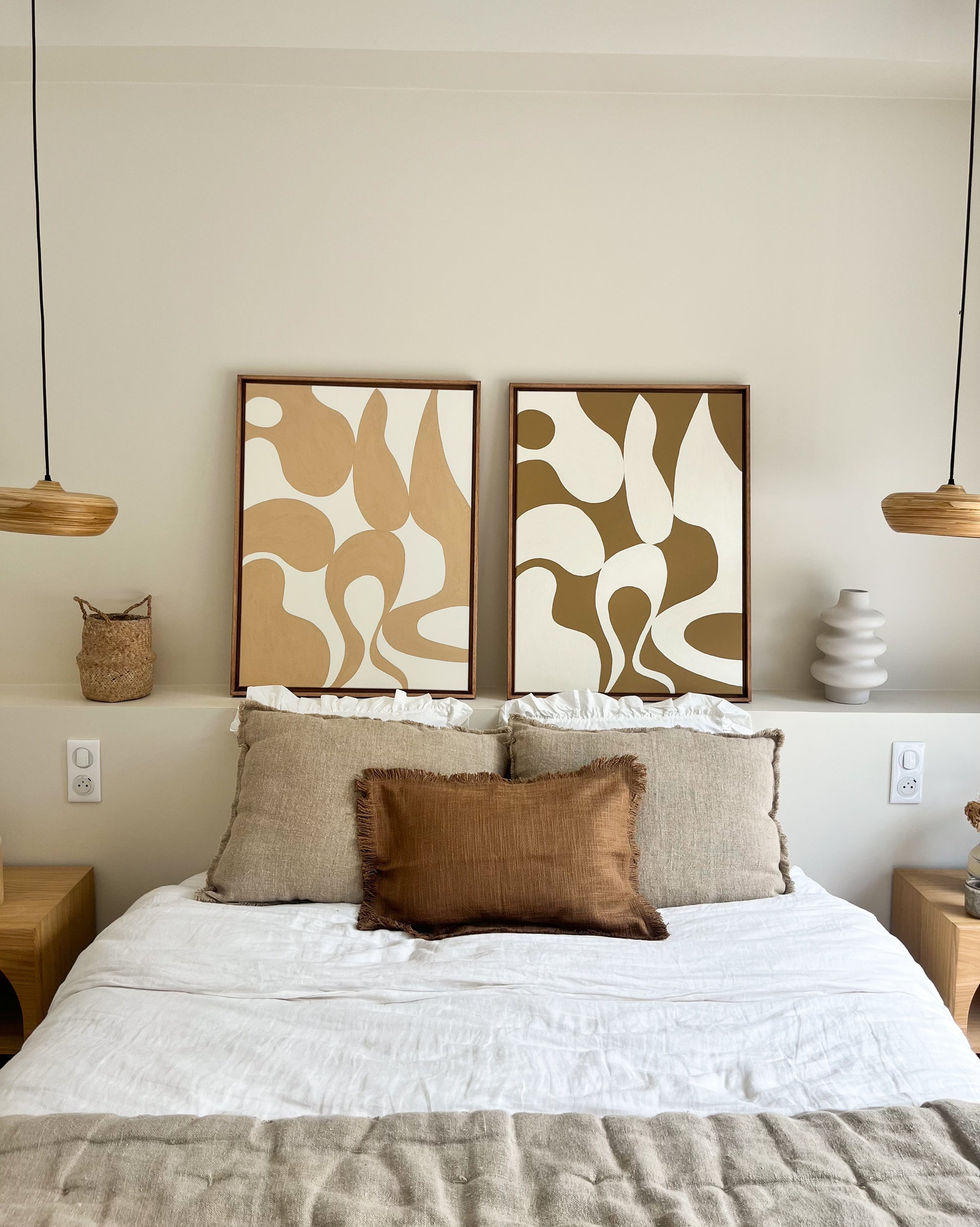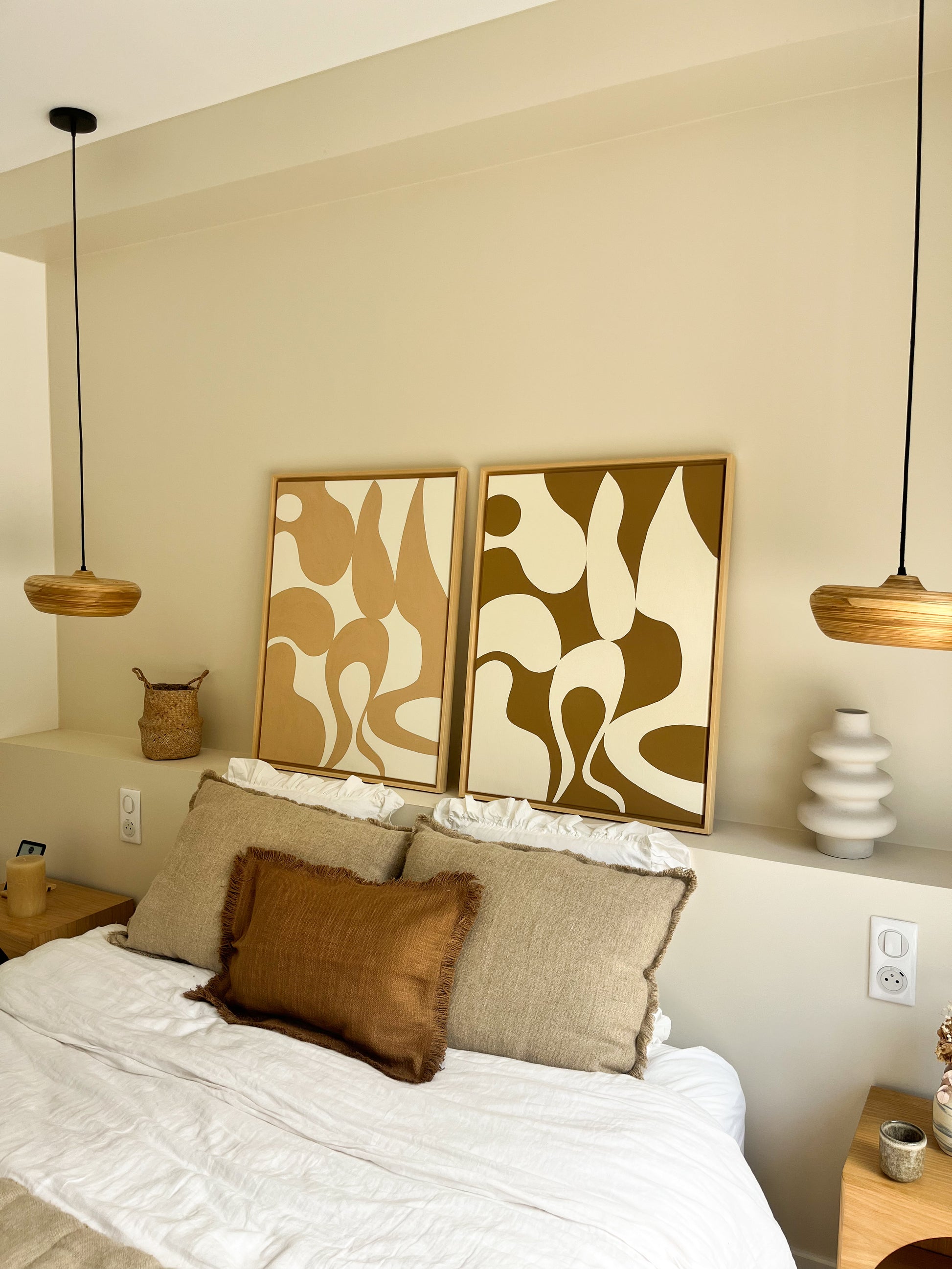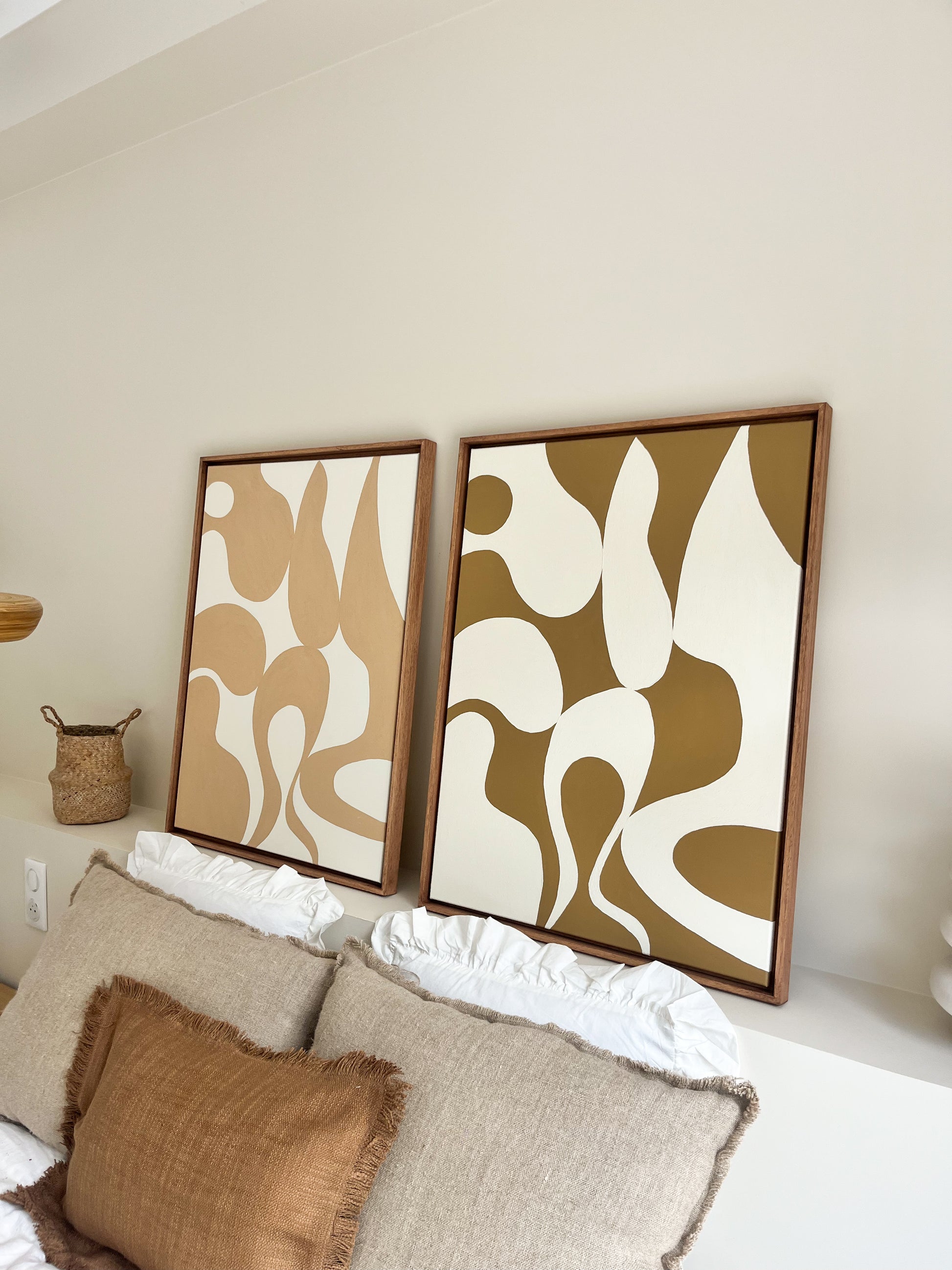 Aux couleurs crème et marron clair ces tableaux épurés et lumineux sont parfaits pour un intérieur chaleureux et tendance, ils s'adapteront parfaitement à votre décoration en apportant une touche de couleur et de texture. À positionner au dessus d’un canapé, en tête de lit ou au dessus d’u e console/buffet.