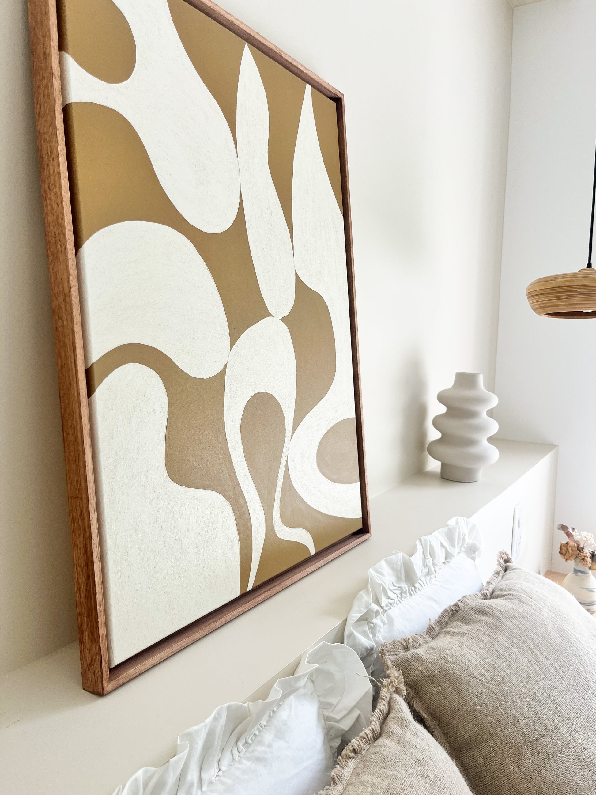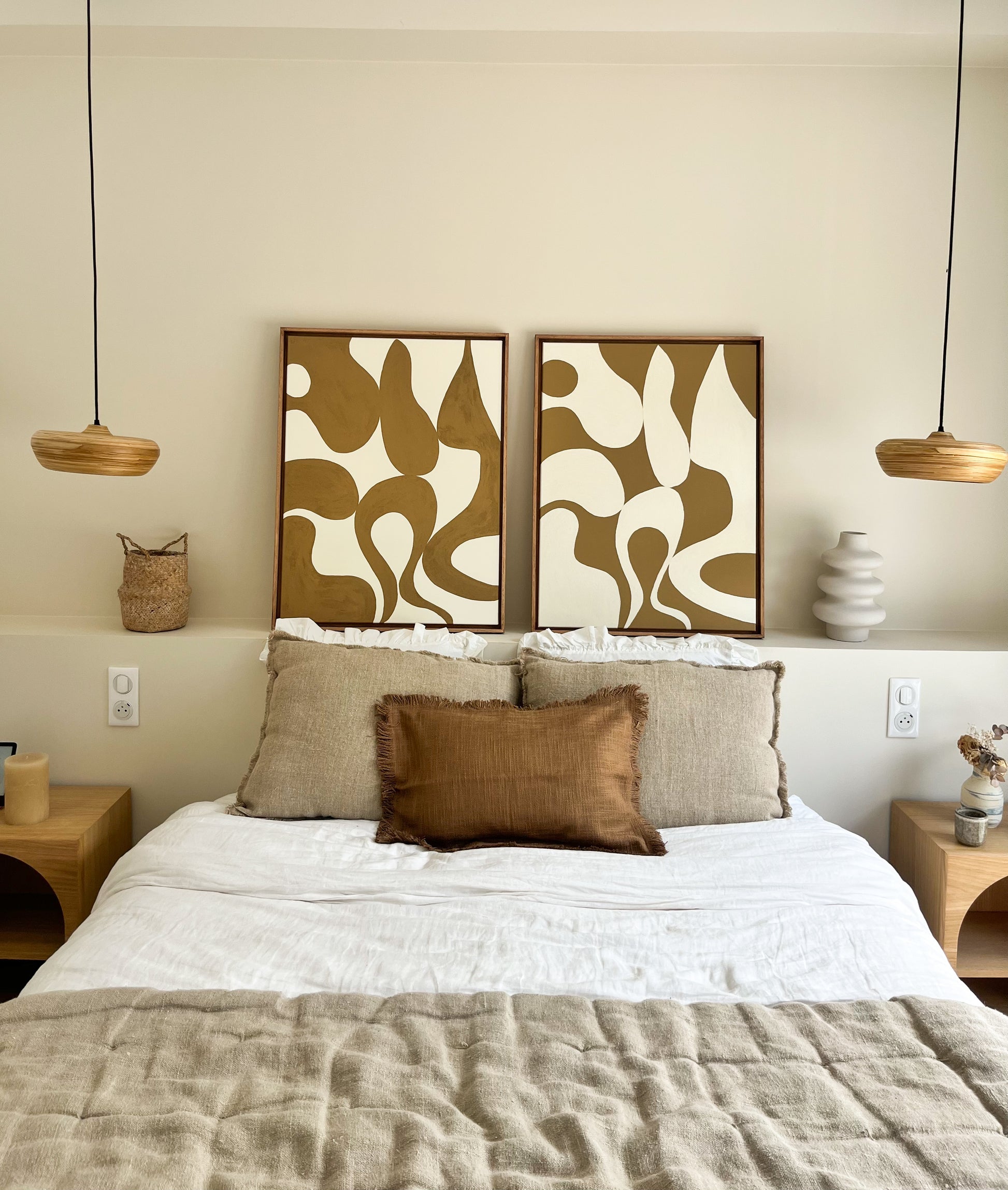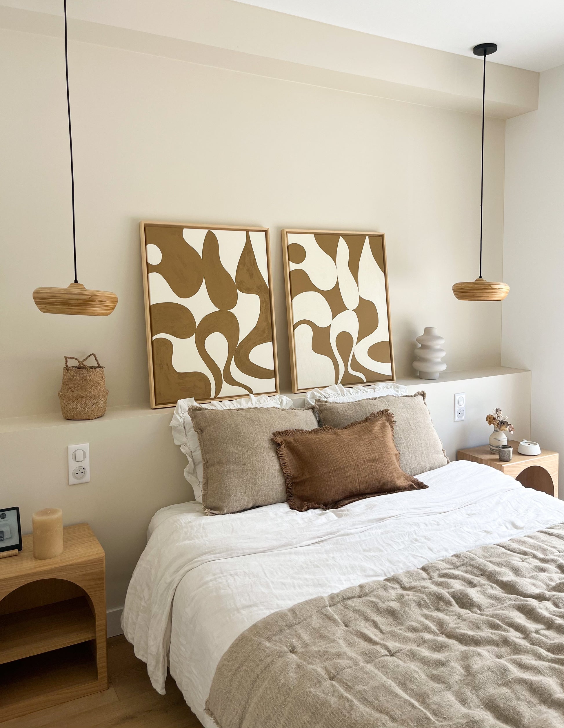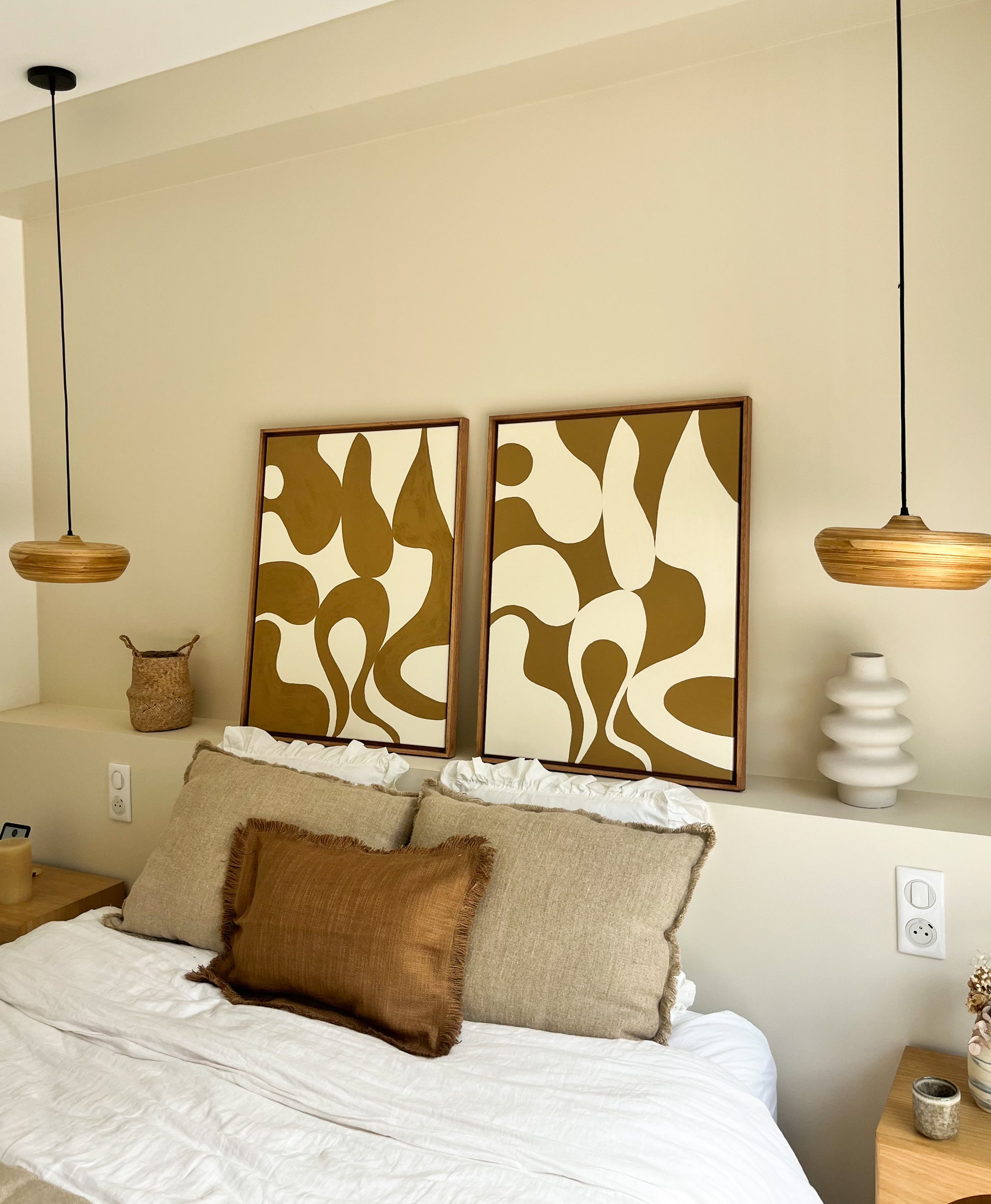 Aux couleurs crème et marron camel ces tableaux épurés et lumineux sont parfaits pour un intérieur chaleureux et tendance, ils s'adapteront parfaitement à votre décoration en apportant une touche de couleur et de texture. À positionner au dessus d’un canapé, en tête de lit ou au dessus d’une console/buffet.