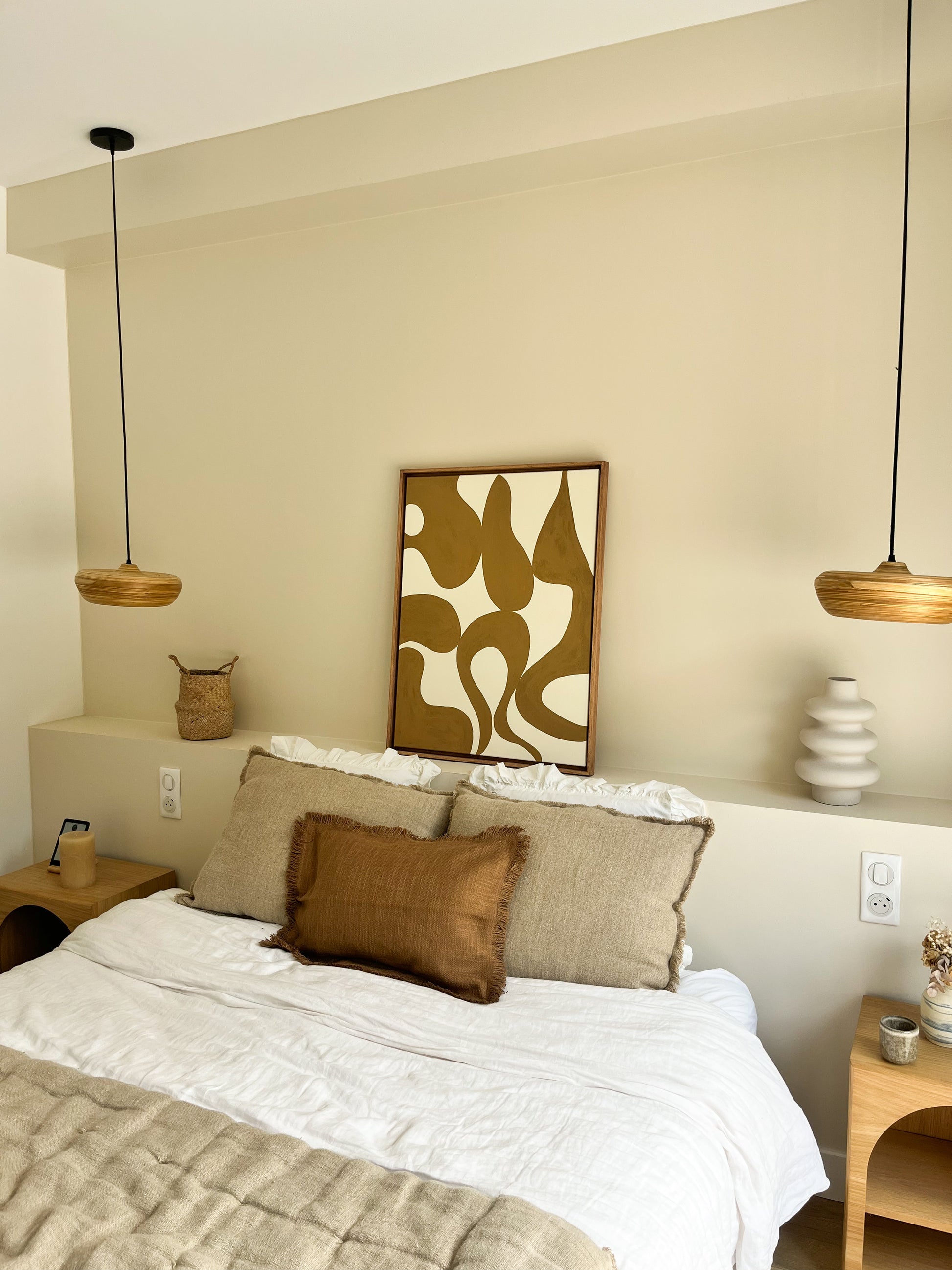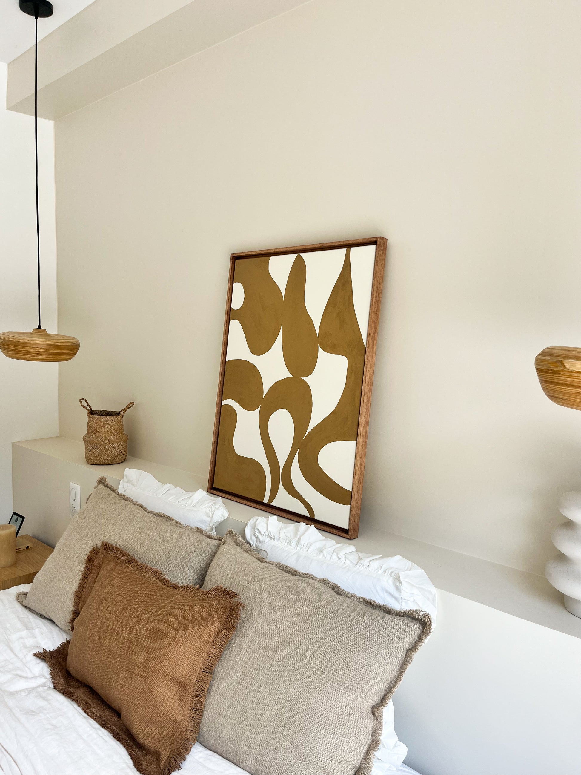 Aux couleurs crème et marron camel grainé ce tableau épuré et lumineux est parfait pour un intérieur chaleureux et tendance, il s'adaptera parfaitement à votre décoration en apportant une touche de couleur et de texture.