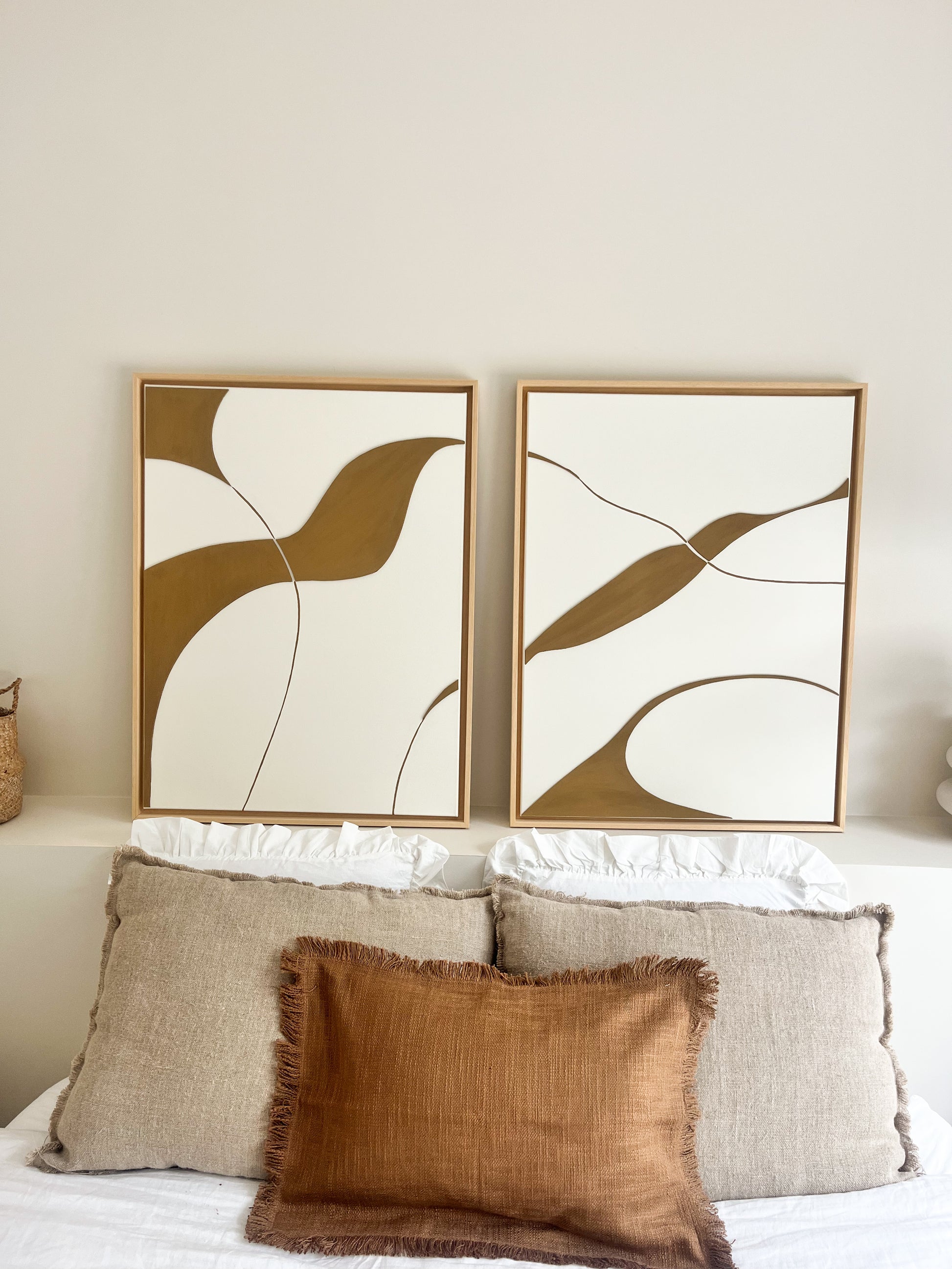 Ces tableaux sont uniques, aux reliefs courbés marron camel et au fond crème ils apportent une touche minimaliste et caractérielle à une décoration. Parfaits pour un intérieur chaleureux, ils donneront à votre intérieur un côté épuré et tenfance grâce à leur encadrement en bois.