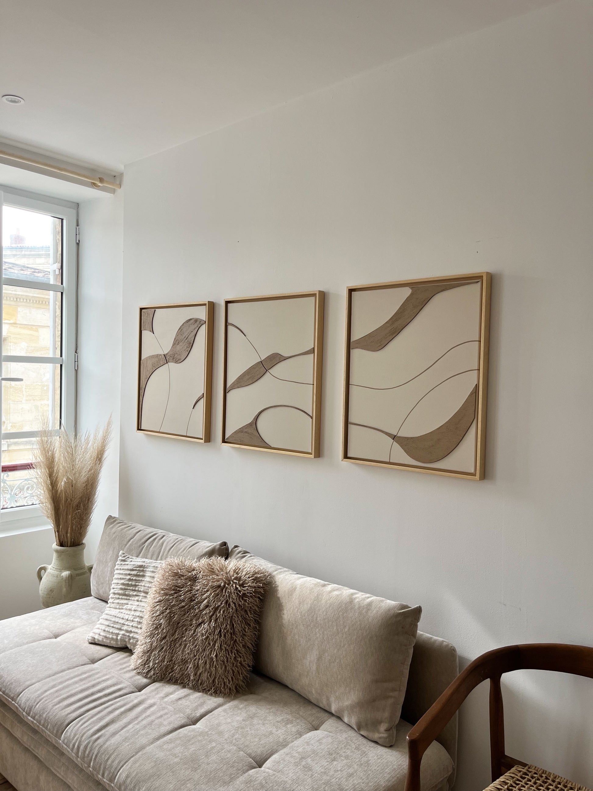Ces tableaux sont uniques, aux reliefs courbés taupe grainé et au fond beige ils apportent une touche minimaliste et caractérielle à une décoration. Parfaits pour un intérieur chaleureux, ils donneront à votre intérieur un côté épuré et minimaliste grâce à leurs encadrements en bois.