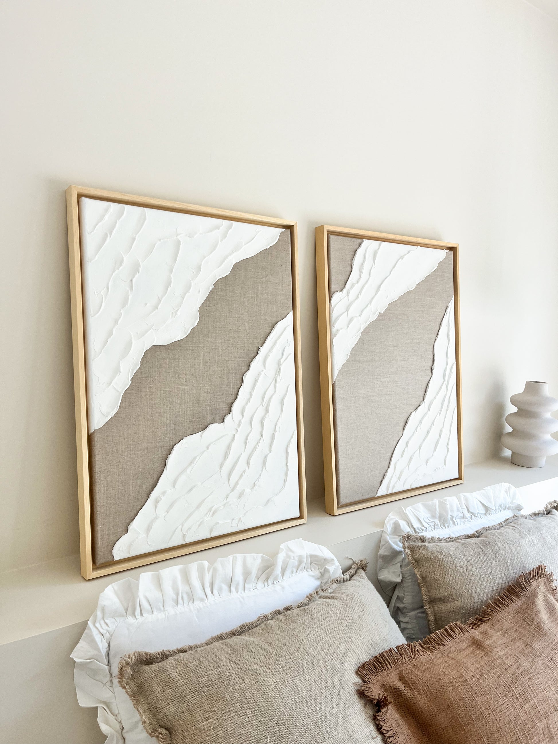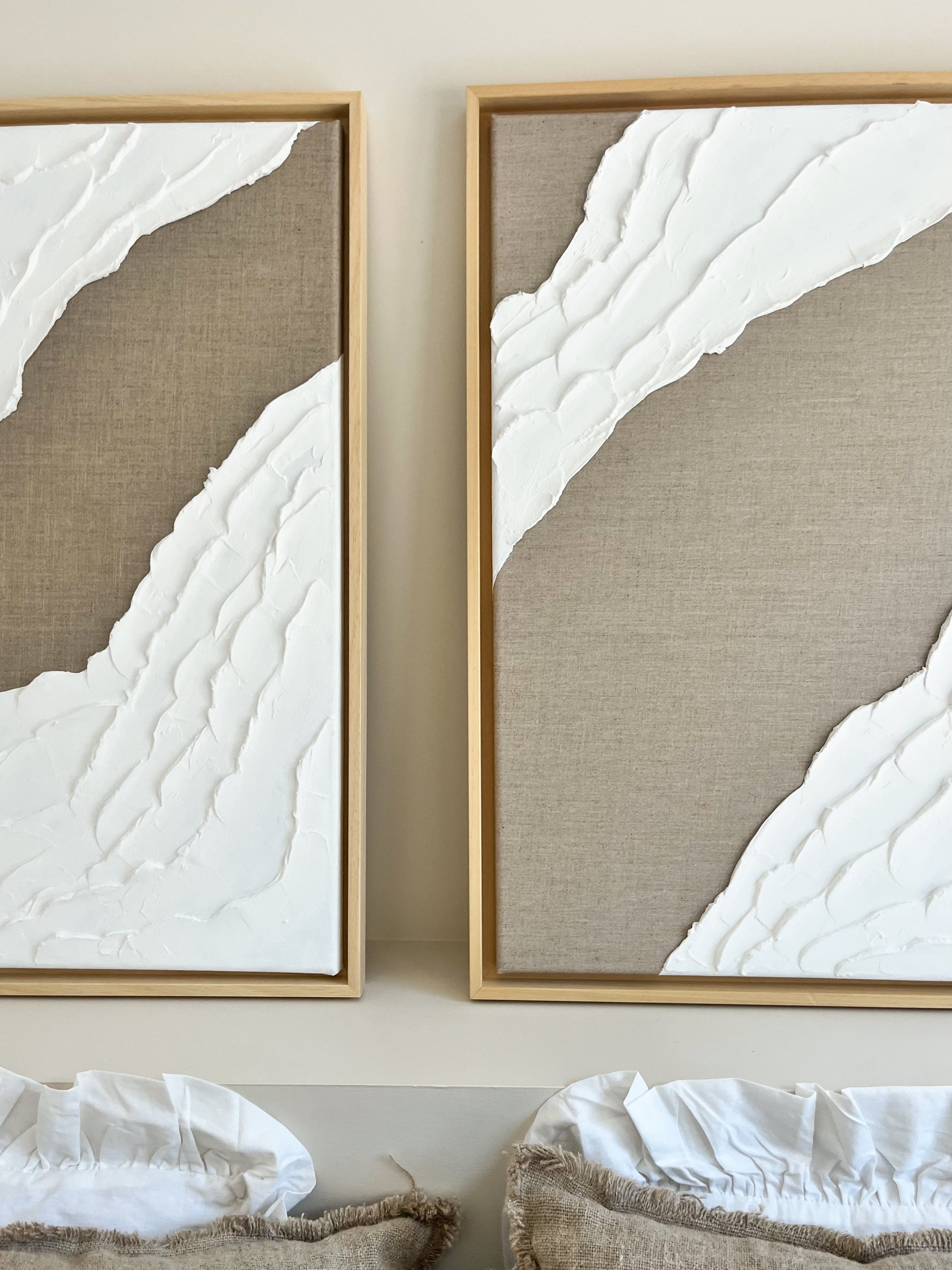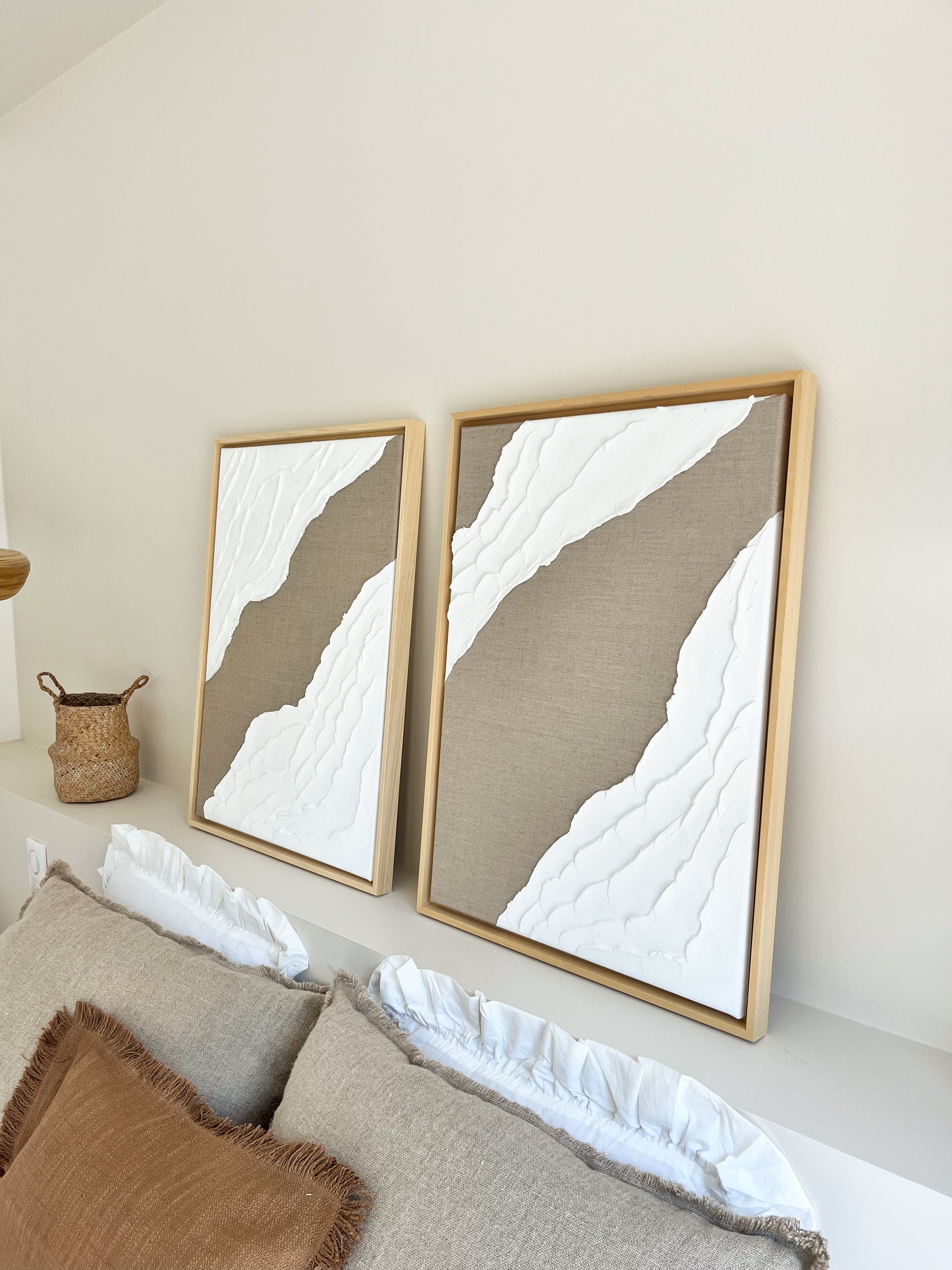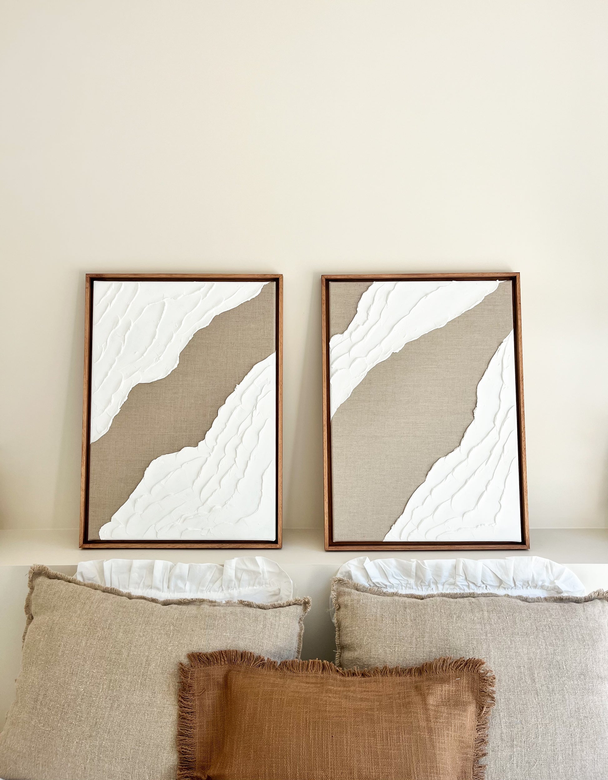 Offrez une touche intense de texture à votre décoration d'intérieur avec ces tableaux texturés blanc et ces toiles en lin au fond. Ces tableaux aux reliefs minimalistes apporteront de la luminosité et de la profondeur à votre décoration d’intérieur. Il sont parfaits pour créer un intérieur épuré et minimaliste, tout en ajoutant une touche distinctive à votre pièce.